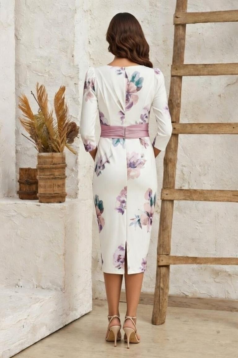 Vestido Midi Estampado Detalle Fajín