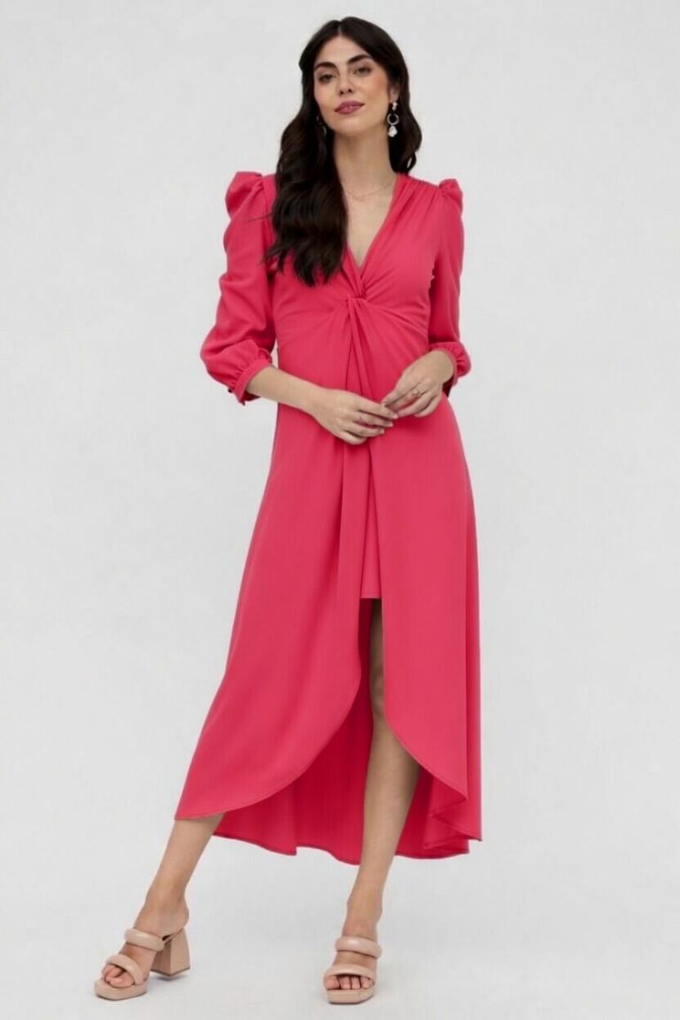 Vestido Midi Fucsia Detalle Volantes